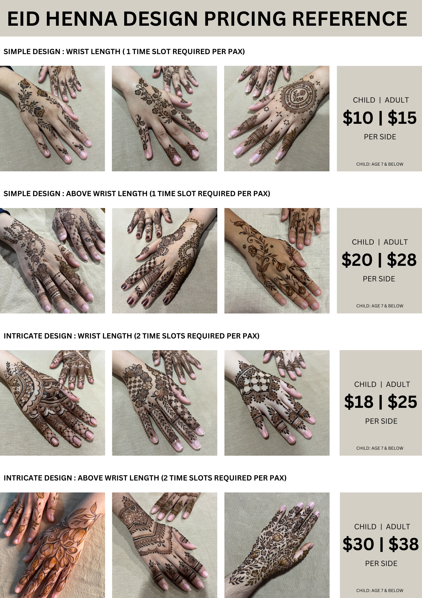 🖼 Once your booking is CONFIRMED, we'll ask for you to send us the design(s) you'd like to do for your session and advise accordingly if its applicable for the session you’ve booked. If you’re unsure, you may WhatsApp us first before booking.